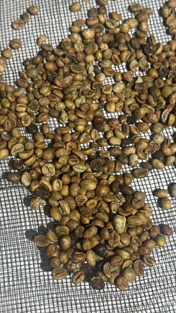 Secagem de conilon feita 100% com o uso de gás durante a safra de 2025, pelo produtor Jucelio Schiffelbein, no município de Pancas. Foto: divulgação.